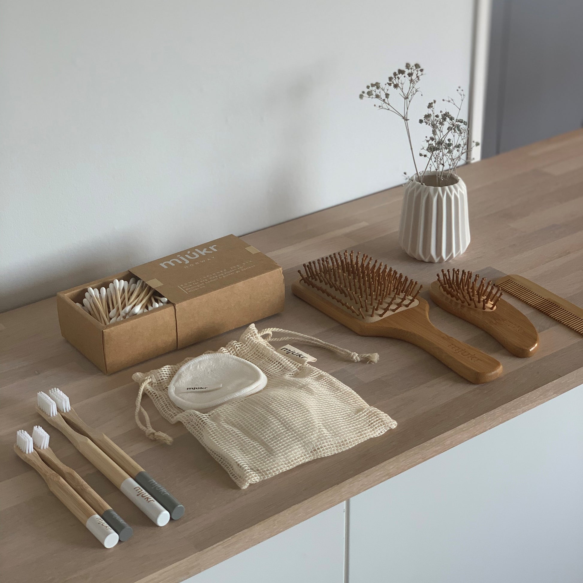 mjúkr NORWAY Mini Hårbørste i bambus
