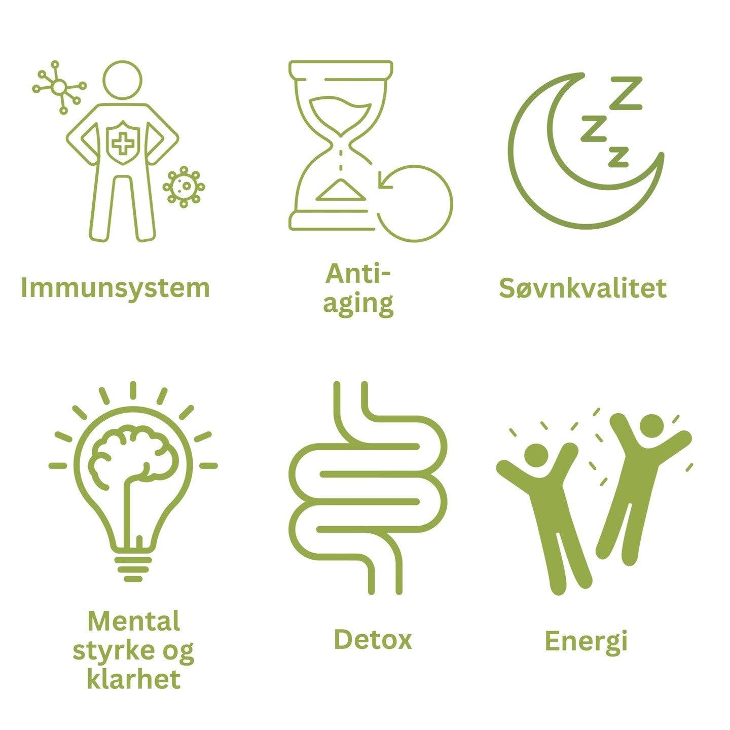 Sulforafan påvirker immunforsvaret, søvnkvalitet, antiaging, mental styrke og klarhet, detox og energi.